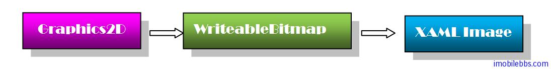 引路蜂开发包中提供了一个平台无关的高效二维图形库,提供了诸如LineCap, LineJoin, Brush, TextBrush, Path 等类。它的画板为一个二维数组(内部采用一维数组),每个数组元素为一个32位整数,代表ARGB颜色值。Silverlight System.Windows.Media.Imaging 中定义了WriteableBitmap Class ,WriteableBitmap的Pixels属性也是一个整数数组,其定义方法和引路蜂开发包中定义的一致。因此通过WriteableBitmap作为桥梁,就可以把引路蜂开发包Graphics2D绘制的图形图像显示到Silverlight的XAML 的Image 元素中。