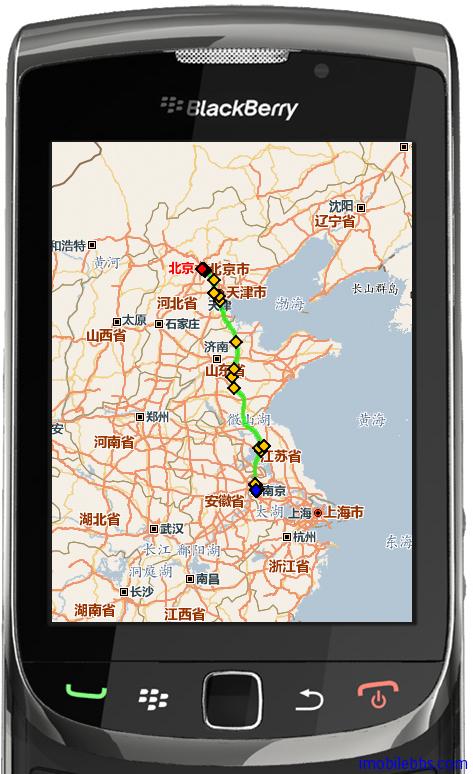 getDirections()具有三个重载函数,例子中是采用的文字描述方式。上述示例采用了from: address1 to: address2 的格式, CloudMade地图服务和MapAbc地图服务则必需采用 经度1,纬度1,经度2,纬度2和格式。