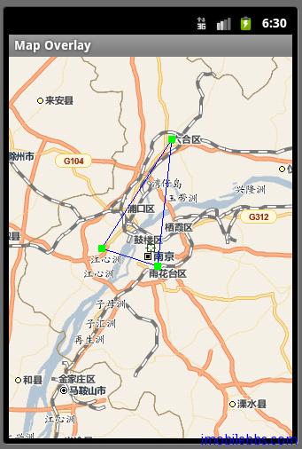 例子中显示几个自定义兴趣点,和一个三角形,并中地图中心显示十字标。