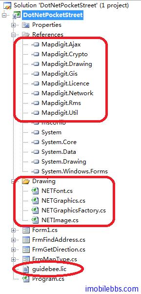 1. 引路蜂开发包是以.Net Framework类库形式提供的,需在项目中添加对这些类库的引用。其中Mapdigit.Drawing ,Mapdigit.Gis, Mapdigit.Licence, Mapdigit.Util 是可以在程序中使用的,Mapdigit.Ajax, Mapdigit.Crypto ,Mapdigit.Rms, Mapdigit.Network 为辅助类库并经过扰码(Dotfuscated)无法再程序中使用。
