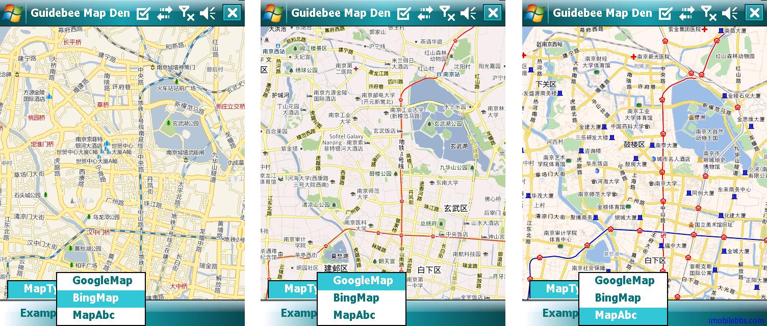在MainForm上添加一个mnuMapType, 在其下增加三个子菜单mnuMapType_GoogleMap ,mnuMapType_BingMap, mnuMapType_MapAbc用来设置显示示Google 中国地图,MapAbc地图,Bing 中国地图。