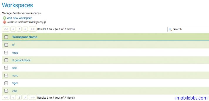使用GeoServer创建Workspace, Workspace 用来管理一组相关的地图图层(Layers),比如道路层,湖泊层,文字层等,多层叠加可以构成完整的地图。