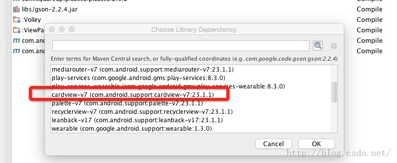 我们知道CardView组件是Android L开始引入,同时Google也做了兼容包在V7包里边了,具体我们来看一下项目存在的路径: