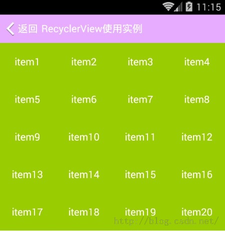 3.在Activity中获取RecyclerView控件然后进行设置LayoutManger以及Adapter即可,和ListView的写法有点类似: