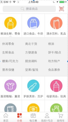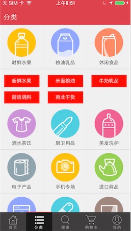 这段时间一直在进行开发商城的APP(Android和IOS),也研究一下国内绝大多数的电商APP(例如:淘宝,京东,天猫,苏宁易购,顺丰优选等等),他们的商品分类其实大多数属于常见格调:列表-点击二级列表-具体三级分类列表。唯有看了一号店IOS端的APP,感觉还不错。一级格子分布,点击item,中间显示二级分类。然后我们团队决定仿照该效果实现我们的APP。今天的文章打算分为两部分来写1.IOS端效果模拟。2.Android端效果模拟。