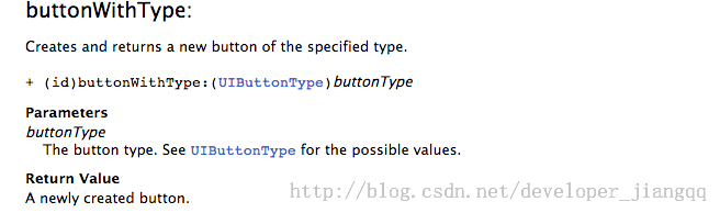 查看文档我们可以通过buttonWithType这个静态方法来创建一个按钮(当然还可以使用initWithFrame);