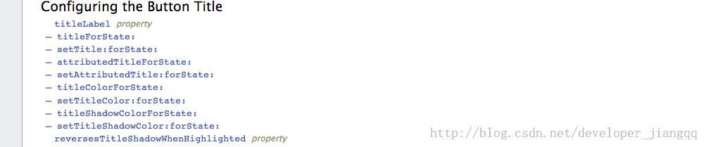 ②:设置UIButton的属性值方法(下面是一些例子从头文件中复制过来得):