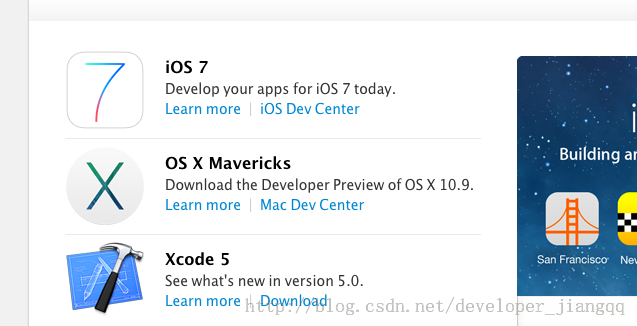 要进行开发不论是Android还是IOS,官网我们肯定要好好看看(官网:https://developer.apple.com/) ,点击下面的IOS Dev Center(IOS开发中心)