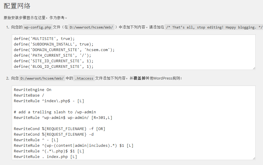 define('WP_ALLOW_MULTISITE', true); // 建议加到<code>/* That's all, stop editing! Happy blogging. */</code>上面 //或者是 /* 好了!请不要再继续编辑。请保存本文件。使用愉快 */