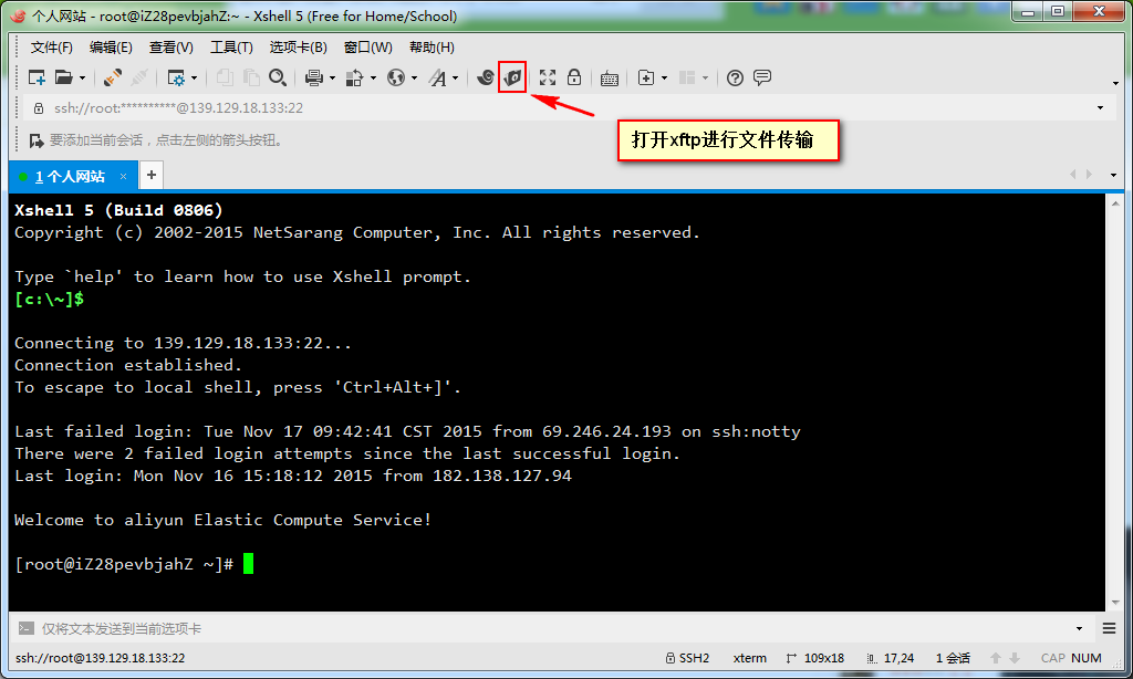 xshell版本:Xshell 5 Build 0806