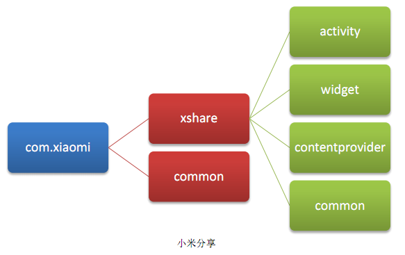 第二,通过观察,我们发现小米分享中每个应用都有common包,不仅有应用程序级别的common包,而且有应用程序内级别的common包。我想说的是,android开发中随着项目开发的积累,确能提取到很多公用的方法、类、功能模块。各个项目之间如此,各个项目内部也是如此,所以针对项目类被各个模块调用的方法,类也可以提取出相应的公用库。