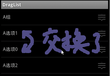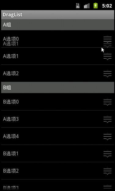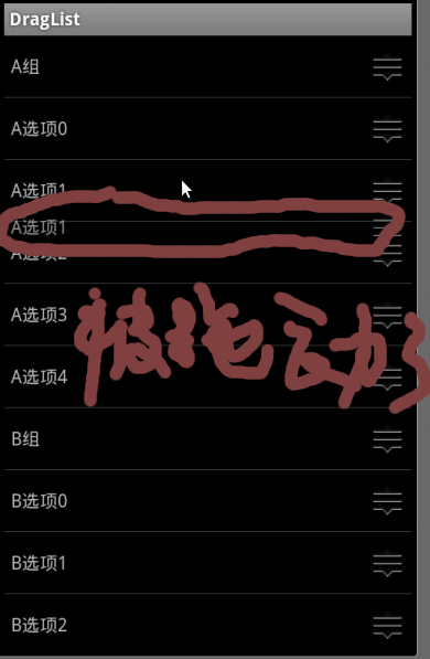 一个可以滚动的拖拽列表雏形就出来了,最终onDrag()方法代码如下: