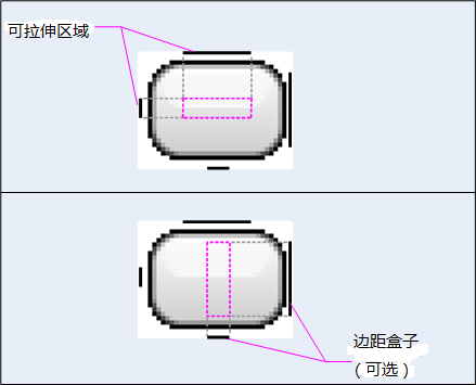 默认的拉伸是整体拉伸,其实边框部分我们并不想拉伸,好,我们自己来定义拉伸区域,如下图: