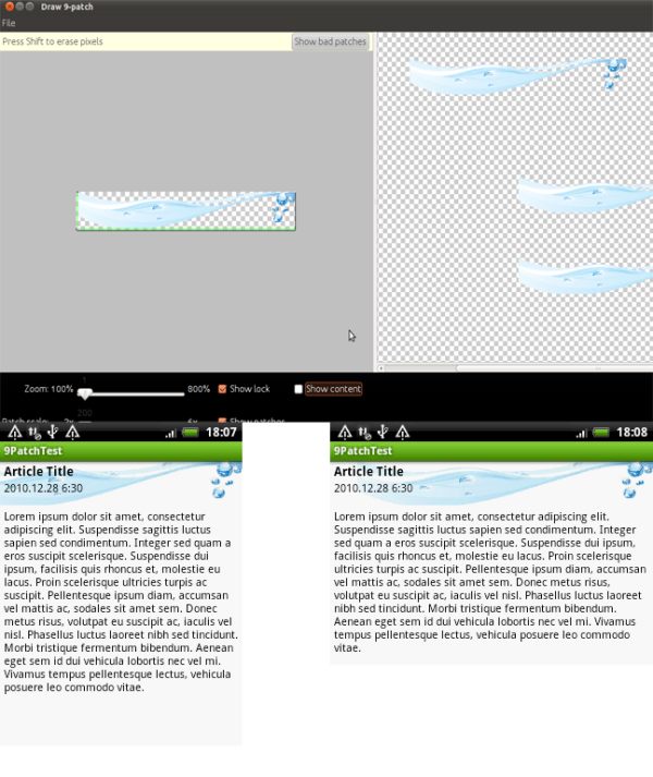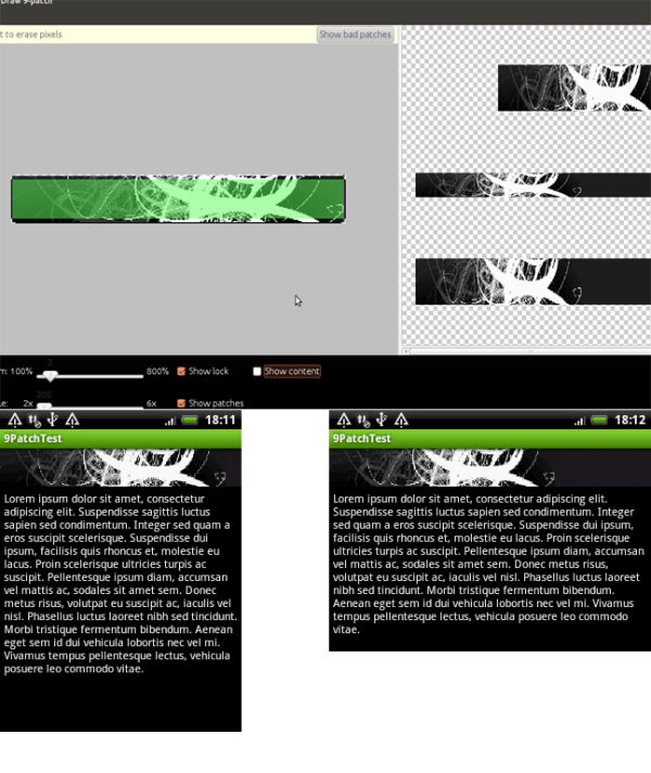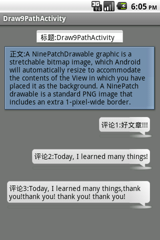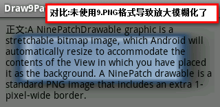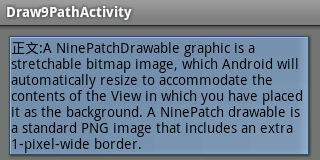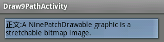 android:text="正文:A NinePatchDrawable graphic is a stretchable bitmap image."