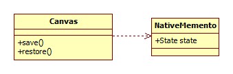 在Android中,Canvas有两个方法 save()和restore()方法再做图形变换的时候使用的非常多,因为涉及到跨语言的问题,我不好就认定这个用的是备忘录模式,但是它的这种思想绝对是备忘录的思想。