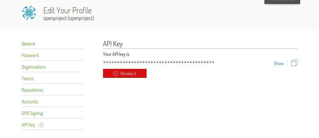 注册后,在https://bintray.com/profile/edit页面的左边菜单的最下面有API Key,点击后:
