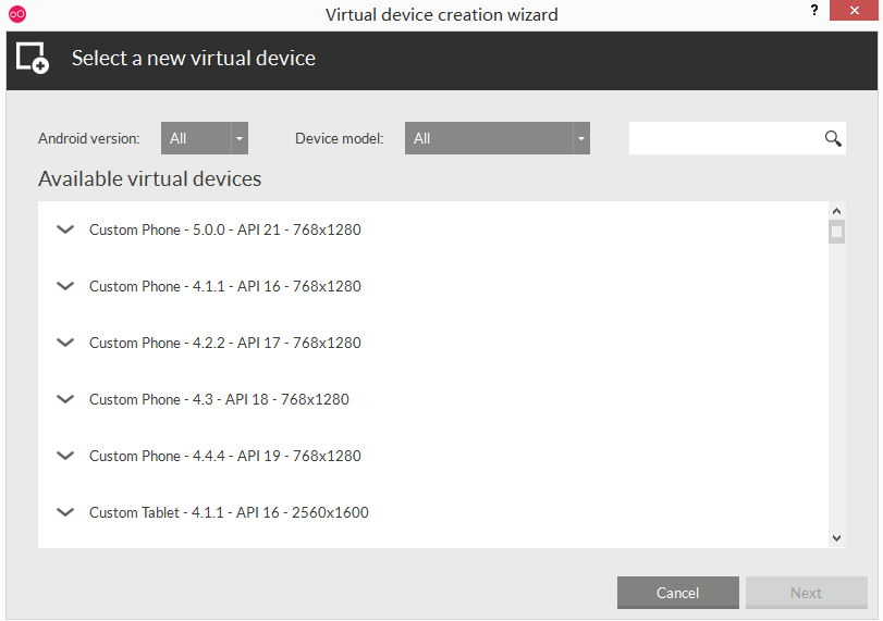 Genymotion的主页面确实很漂亮,忍不住截个图,大家随便看看: