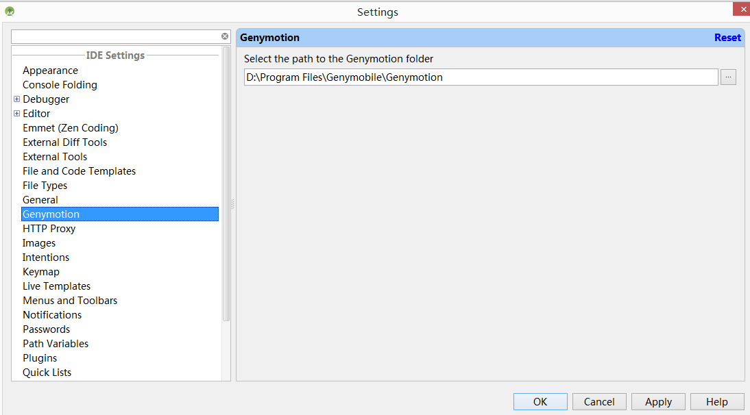 最后设置Android Studio中Genymotion的路径(在我换背景之前截图的)