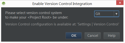 通过最底层的导航VCS→Enable Version Control Integration选择Git版本控制: