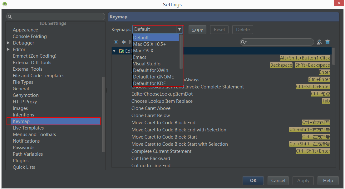 快捷键,Android Studio可以直接选择其他版本的快捷键,包括宇宙第一IDE的Visual Studio: