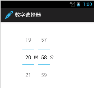数字选择器NumberPicker是Android3.0之后引入的一个控件,比较常用,比如说手机常用的闹钟,可以选择小时和分钟,如果你需要兼容3.0之前版本,GitHub上有开源的项目,具体的下载地址https://github.com/SimonVT/android-numberpicker。本人就没有使用开源的项目,就简单的使用了NumberPicker显示一下效果,开始正题吧: