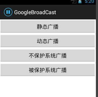 关于系统广播的各种事件网上一找一堆,我就没必要贴在这里了,先来实现第三个和第四个按钮的事件,第三个是系统事件的改变,第四个是电池电量的改变: