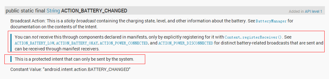 IntentFilter systemintentFilter = new IntentFilter(Intent.ACTION_BATTERY_CHANGED); systembookReceiver = new BookBroadCast(); registerReceiver(systembookReceiver, systemintentFilter);