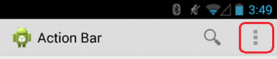 The action bar provides users access to the most important action items relating to the app's current context. Those that appear directly in the action bar with an icon and/or text are known as action buttons. Actions that can't fit in the action bar or aren't important enough are hidden in the action overflow. The user can reveal a list of the other actions by pressing the overflow button on the right side (or the device Menu button, if available).