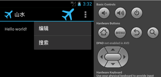 菜单出现了,不过就是没有那三个点,还是有点不甘心,又找了找,还有有人遇到过这个问题的,对于那三个点菜单的话,Android 3.0 (API level 11) +标准叫法叫做:action overflow button低版本的(Android 2.3.x (API level 10) or lower)对应的叫做:overflow menu,效果(不是三个点)是More按钮.