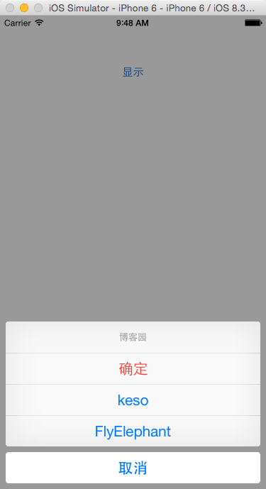 这是最基本的UIActionSheet,标题和按钮,不过有的时候为了美观可以不用标题,效果看起来是非常赞的,先上代码之后讲解: