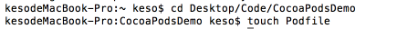 安装了CocoaPods接下来最重要的就是进行实战,使用CocoaPods管理项目,新建一个CocoaPodsDemo的项目,终端中切换到项目所在的路径: