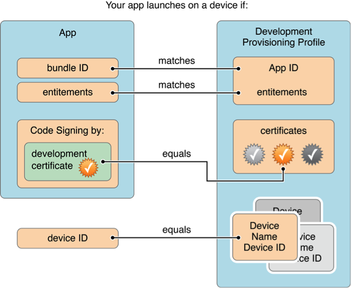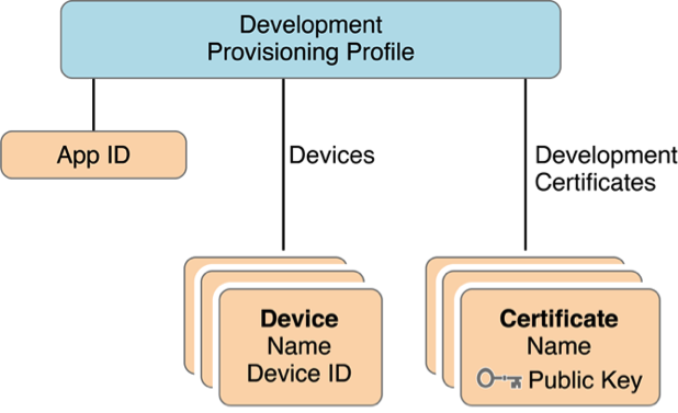一个Provisioning Profile文件包含了上述的所有内容:证书、App ID、设备。