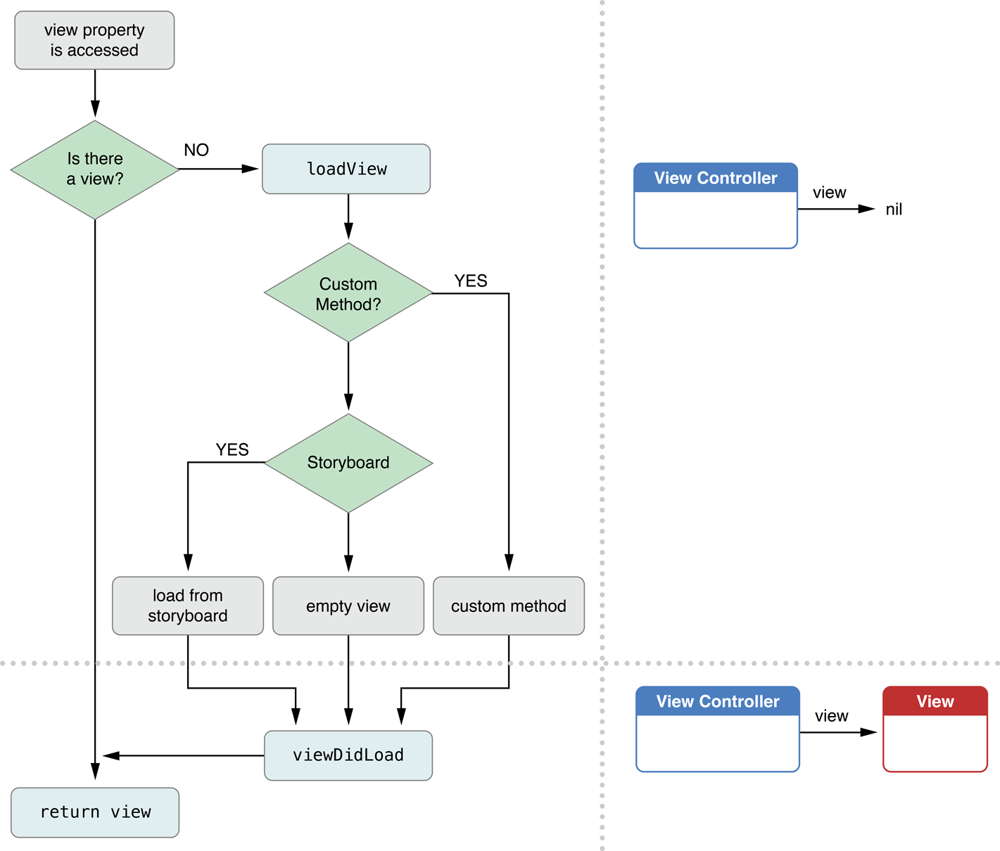 viewDidLoad/dealloc:视图加载完成之后的设置和视图销毁的时候调用;