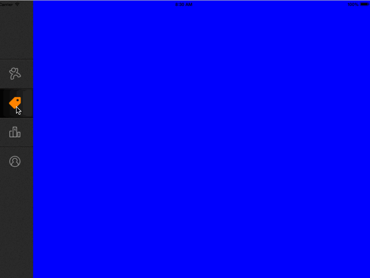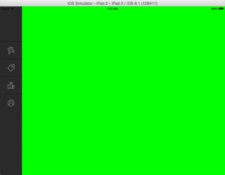 Android中习惯了叫侧边栏,iOS中如果不习惯侧边栏称呼的话可以叫dock,侧边栏的切换,类似于Android中的底部导航栏的切换,iPad尺寸大了一些,导航的栏目放在侧边会显示的更好耐看一些。选项卡是用按钮实现的,通过按钮的状态控制按钮的背景图片,最后通过按钮的Tag属性进行相对应的操作,iPad需要考虑一个横竖屏的问题,不过现在有些项目为了效果也好,为了开发效率也罢,可能只是选中了横屏效果。