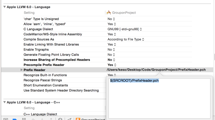 新建之后并不能保证你运行成功,还需要去编译中设置一下Prefix Header($(SRCROOT)/PrefixHeader.pch),清理下项目,导入Common.h文件即可成功;