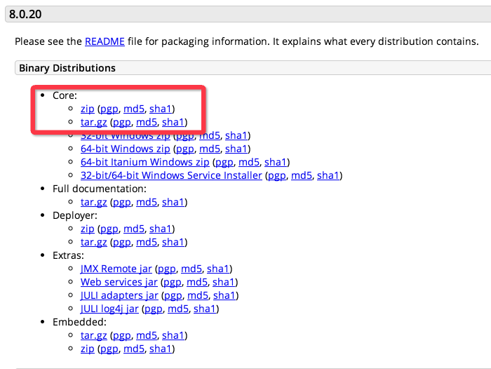 1.下载Tomcat,地址http://tomcat.apache.org/download-80.cgi