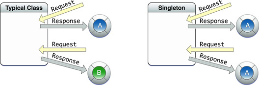 单例模式是一种非常常见的设计模式,之前文章中UIApplication就是一种典型的单例模式,单例理解起来叶很简单,就不是不管如果访问始终只有一个实例化对象,定义全局共享的变量,如果对象是空则初始化一个对象,如果对象已经存在则使用已经实例化的对象。单例设计模式的作用是使得这个类的一个对象成为系统中的唯一实例,因此需要用一种唯一的方法去创建这个对象并返回这个对象的地址。下面有一张苹果官网的图片可以参考一下: