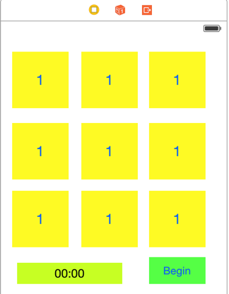 根据上面的概念,大概页面布局就是3*3的九宫格,一般是选择数字练习,也没有特别的多弄弄,Main.storyBoard的布局如下: