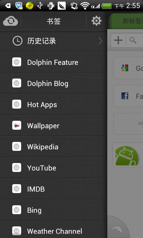 前段时间比较流行,我最早是在海豚浏览器中看到的,当时耳目一新。最早使用左右推出菜单的,听说是Facebook,我不确定消息的真实性。左右推出菜单如图,