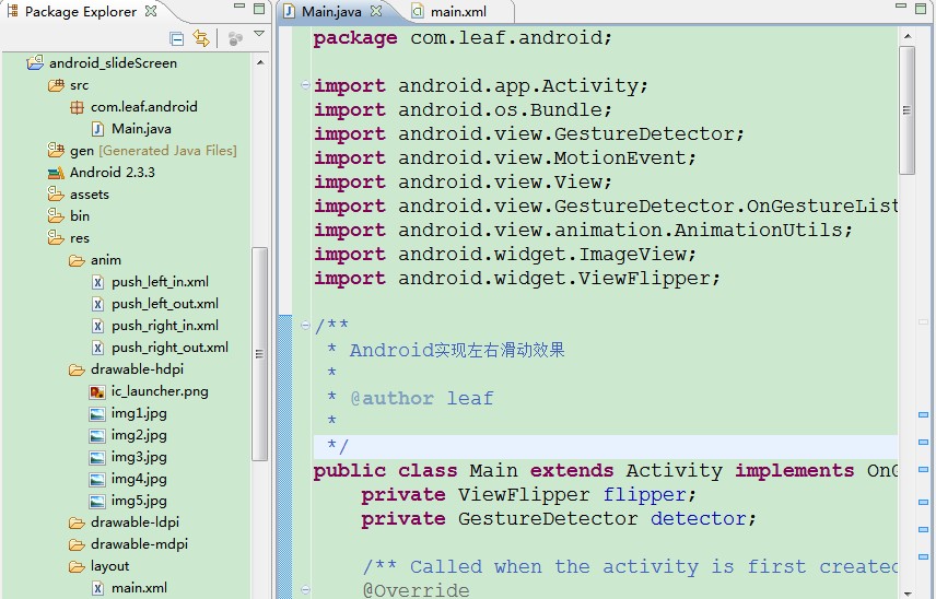 如果想要实现滑动翻页的效果,就要了解另外一个类:android.view.GestureDetector类。GestureDetector类中可以用来检测各种手势事件。该类有两个回调接口,分别用来通知具体的事件。