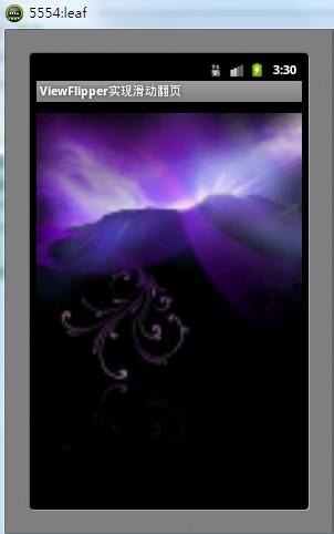 <?xml version="1.0" encoding="utf-8"?> <LinearLayout xmlns:android="http://schemas.android.com/apk/res/android" android:layout_width="fill_parent" android:layout_height="fill_parent" android:orientation="vertical" > <ViewFlipper android:id="@+id/ViewFlipper1" android:layout_width="fill_parent" android:layout_height="fill_parent" > </ViewFlipper> </LinearLayout>