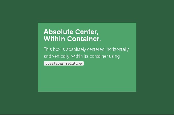 使用“完全居中”,就可以在一个设置了position: relative的容器中做到完全居中元素了! (居中例子,请前往英文原文查看)