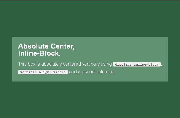 迫切需要的方法:inline-block法居中。基本方法是使用 display: inline-block, vertical-align: middle样式和伪元素让内容块在容器中居中。我的实现用到了几个在其他地方见不到的新技巧解决了一些问题。