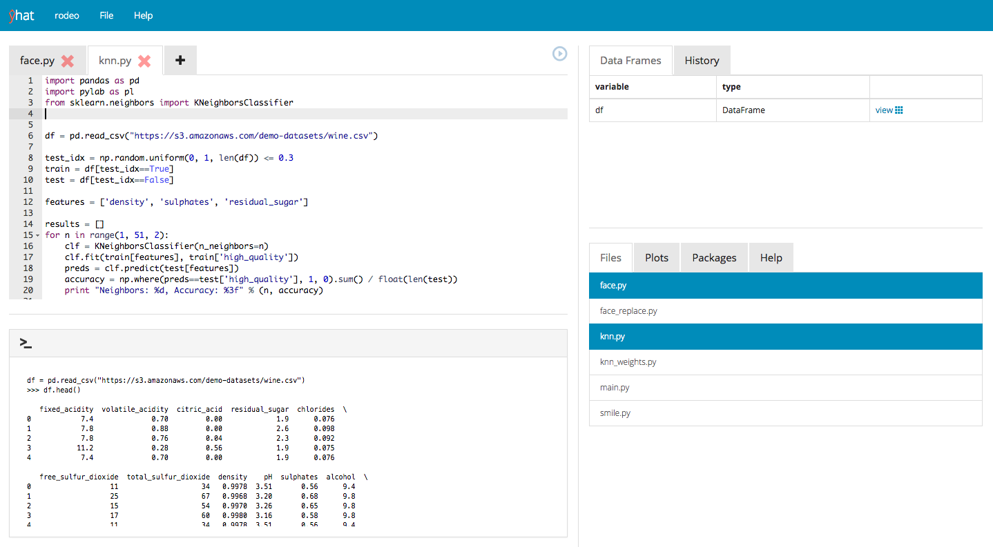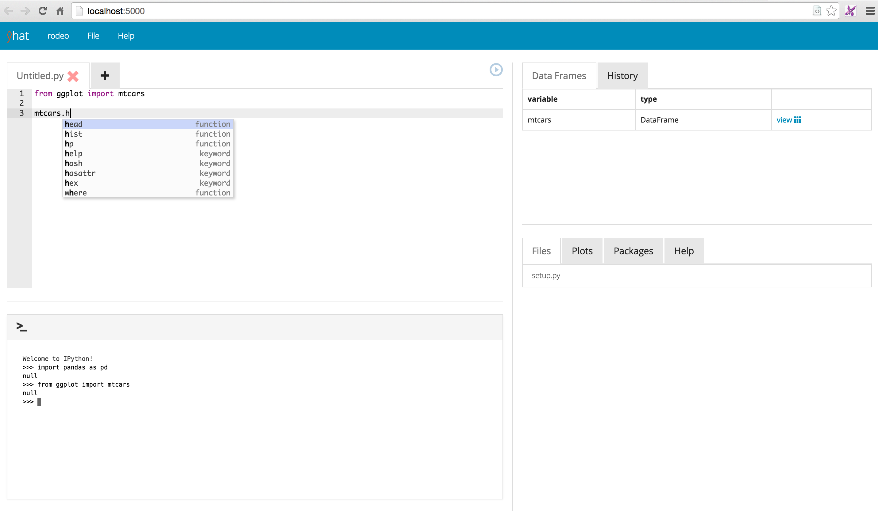 Rodeo 是一个以数据为中心的 Python 集成开发环境,基于 Web 浏览器使用。