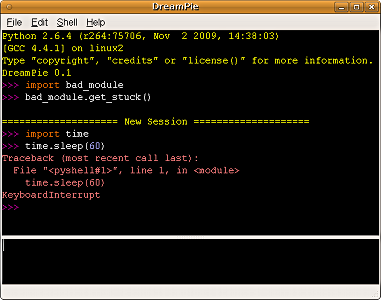 DreamPie 是一个Python shell,为Python开发者提供自动完成的属性;功能和文档显示;并且将session历史存储为HTML文件。DreamPie 本身包含一些不错的功能,如将命令输出窗口与代码输入窗口分开、能够将代码保存到文件、支持自动补完函数/文件名/属性、可折叠长输出、能保存会话历史等,总之很值得 Python 爱好者一试。