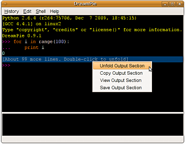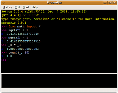DreamPie基于GPL3许可,此版本支持Python 2.5, 2.6 和 3.1, Jython 2.5 以及IronPython 2.6,可运行在、Linux、Mac OS X系统上。