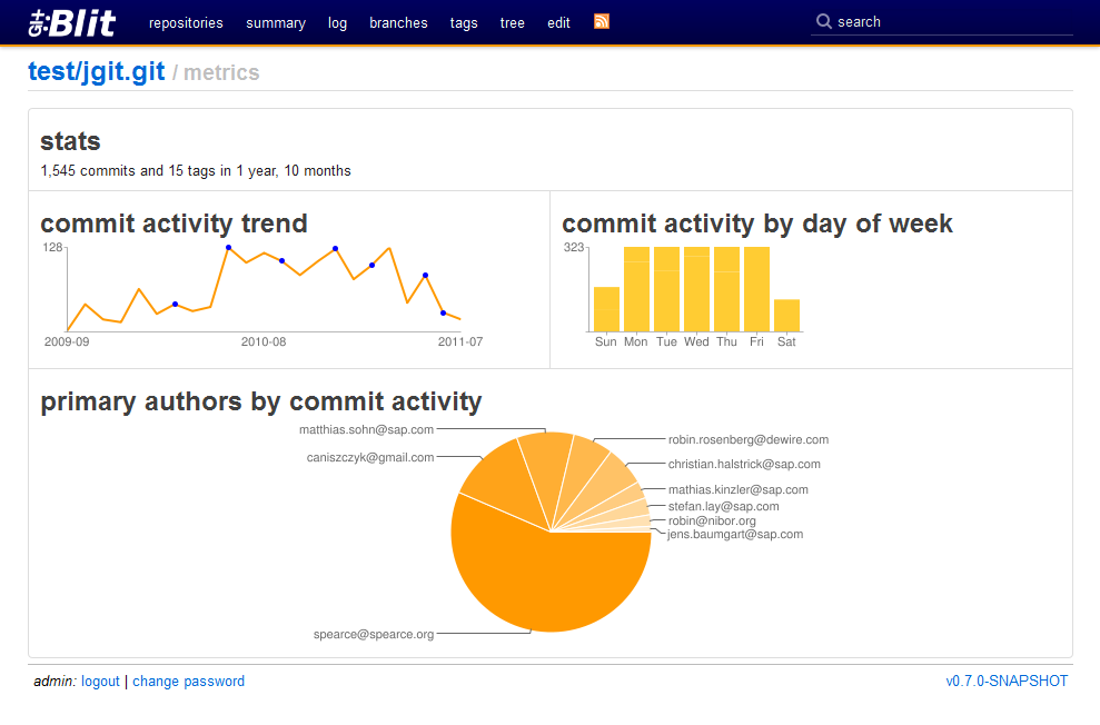 Gitblit 是一个纯 Java 库用来管理、查看和处理 Git 资料库。相当于 Git 的 Java 管理工具。