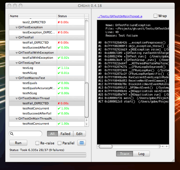 GH-Unit 是一个基于Object C的测试框架,支持Mac OSX 10.5和iOS 3.0以上版本。它具有以下特点: