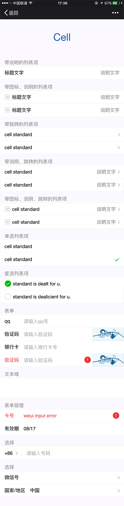 Cell,列表视图,用于将信息以列表的结构显示在页面上,是wap上最常用的内容结构。Cell由多个section组成,每个section包括section headerweui_cells_title以及cellsweui_cells。