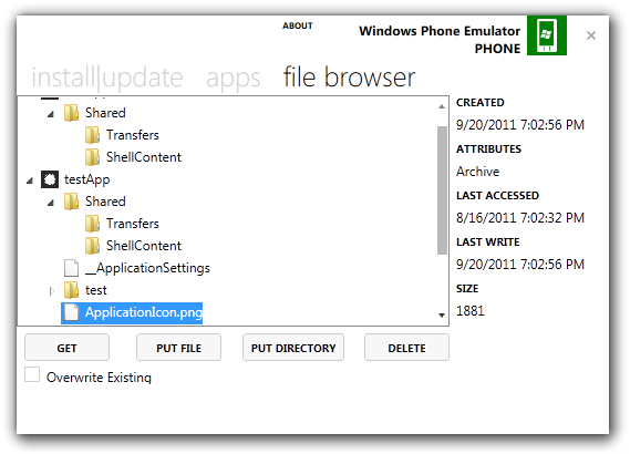Windows Phone Power Tools是Windows phone SDK开发工具的一个扩展,在测试更新时,允许开发者直接更新已经开发完成的应用,而不需要重新安装xaps。同时,Windows Phone Power Tools为开发者提供了一个友好的图形界面来浏览IsolatedStorage文件,而不用手工输入完整的IsolatedStorage路径。